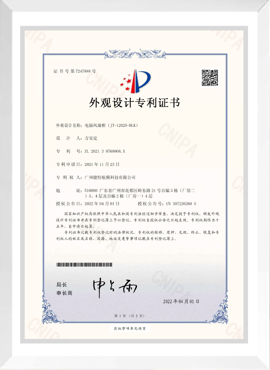 捷特成立于2012年,一直專注于各個行業(yè)散熱風扇的研發(fā)生產,并提供專業(yè)的解決方案。經過十多年的持續(xù)發(fā)展,已形成了集研發(fā)、生產、銷售一條龍的服務體系,為廣大客戶提供優(yōu)質的滿意的產品,并開始創(chuàng)立自己的品牌ZLC 智樂創(chuàng)。